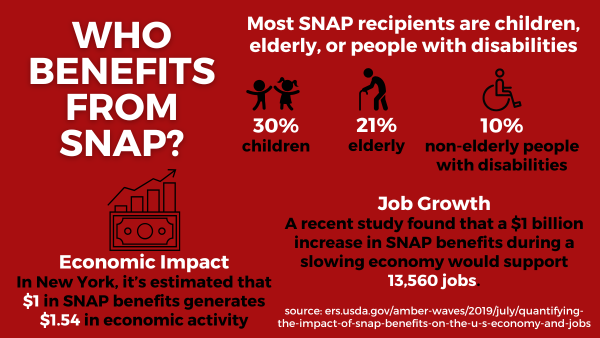 If feeding children, the elderly, people with disabilities and others who struggle to make ends meet wasn’t enough of an incentive to protect SNAP funding — it’s also a boost for our economy. The state Office of Temporary and Disability Assistance highlighted a study showing that $1 in SNAP benefits generates $1.54 in economic activity at grocery stores, farmers markets and other small businesses. Cutting SNAP drains communities and puts at risk the jobs of those who administer benefits.